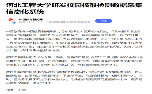 图3 中国教育新闻网报道“河北工程大学研发校园核酸检测