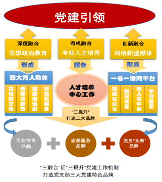 石家庄铁路职业技术学院人文社科系学生党支部,作为教育部第二批“全国党建工作样板支部”培育创建单位,以“党建工作精细化、教育活动精品化”为目标,创新党建工作与专业人才培养有机融合、与思想政治教育深度融合、与网络新型媒体创新融合的“三融合”党建工作机制,坚持实处着力、创新求活,全面提高党支部的组织力、凝聚力、战斗力。党支部通过有效实施“三融合”党建工作机制,实现了支部工作的“三提升”,打造了文化传承、志愿服务和党员“头雁”三大党建工作特色品牌,使学生党支部真正成为引领学生成长成才的坚强堡垒。