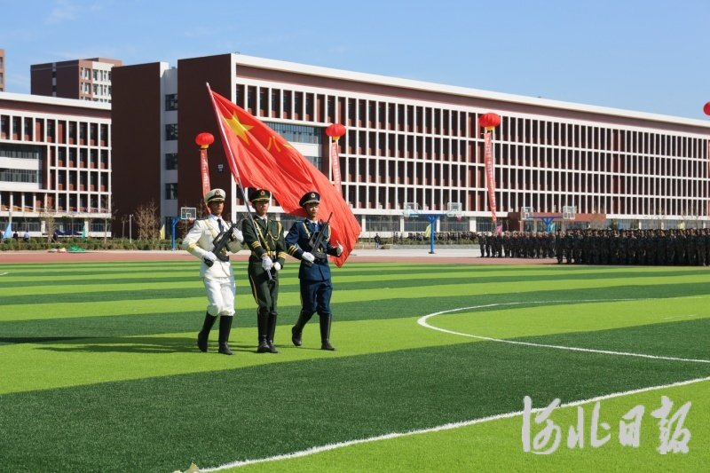 图为每周一次的升国旗仪式成为河北科技学院思政教育的重要载体。