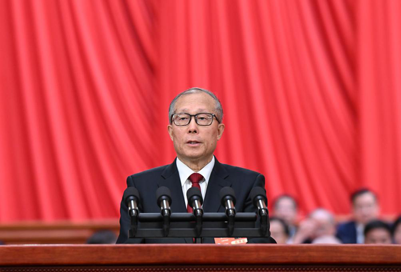 3月5日上午,第十四届全国人民代表大会第三次会议在北京人民大会堂开幕。受全国人大常委会委托,全国人大常委会副委员长李鸿忠作关于全国人民代表大会和地方各级人民代表大会代表法修正草案的说明。(新华社记者 张领/摄)