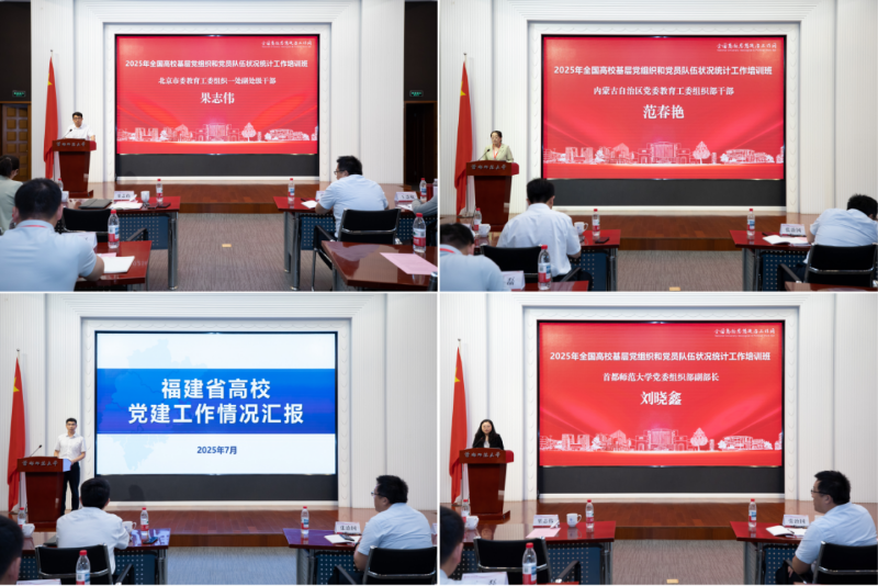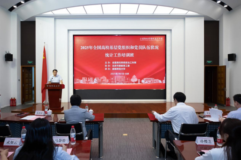7月3日,2025年全国高校基层党组织和党员队伍状况统计工作培训班在首都师范大学举办。首都师范大学党委副书记孙晓峰、教育部思政司党建统战处副处级干部段恒强、北京市委教育工委组织一处处长谭振康、全国高校思想政治工作网副主任王慧敏出席会议。来自全国各省(自治区、直辖市)党委教育工作部门和新疆生产建设兵团教育局相关处室有关负责同志参加会议。全国高校思想政治工作网常务副主任张治国主持会议。