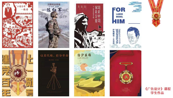 图1:“七一勋章”获得者事迹融入课堂学生海报设计作品