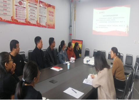 上图为应用化学系第二党支部书记王超带领支部成员学习“课程思政大练兵、课程育人我先行”主题党日活动