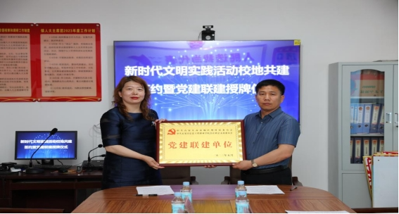 附图4:2023年5月9日,传媒艺术系党总支与河北交通职业技术学院汽车工程系举行党建联建授牌仪式