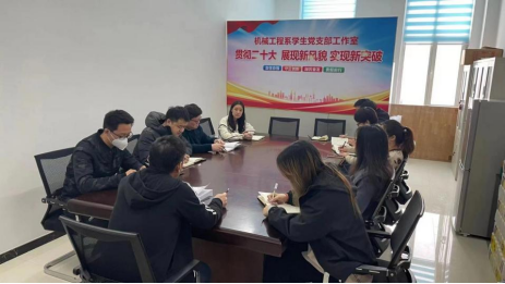 河北机电职业技术学院机械工程系学生党支部现有党员56名,教师党员12名,学生预备党员43名,学生正式党员1名,支委委员为支部书记1人、组织宣传委员1人、纪检委员1人,设置3个党小组。支委委员和党小组组长均由党建工作经验丰富、专业能力突出的党员担任。学生党支部在学院党委和系党总支领导下,以立德树人为根本任务,始终把政治建设摆在首位,深入学习贯彻党的二十大精神,用习近平新时代中国特色社会主义思想武装头脑、指导实践、推动工作。