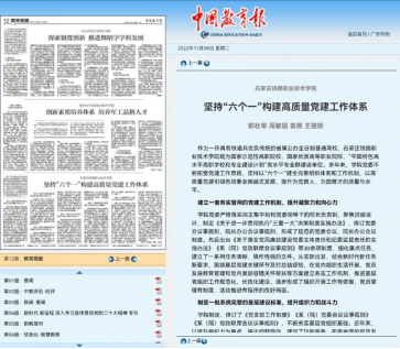 图3:2022年11月8日,中国教育报以《坚持“六个一” 构建高质量党建工作体系》为题,刊发学院党建工作经验