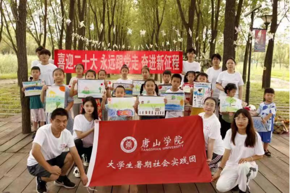 通过暑期社会实践,开展“美焕乡村——以艺振兴”助力乡村帮扶活动,为迁安市小石岭村进行村庄规划,对党建广场、体育广场、文化广场等进行设计,并积极参与环境美化、精神文明建设,为该村抗战英雄人物李万义的事迹创作壁画40多幅,叫响红色品牌;为留守儿童开设花艺、皮影制作等非遗课堂,助力乡村美育教育,推动高校服务地方文化发展。