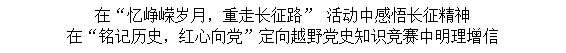 不断丰富实践内容,创新实践途径,引导学生在“红色家乡我来讲”活动中厚植家国情怀;在“忆峥嵘岁月,重走长征路”活动中感悟长征精神;在“铭记历史,红心向党”定向越野党史知识竞赛中明理增信;在“不忘初心学雷锋,牢记使命共传承”中传递志愿服务精神;在“喜迎二十大,青春著华章”向党说说心里话和“唤醒红色记忆,唱响时代旋律”红歌传唱中表达对党的赤诚之心……让学生在实践中长本领、增才干,激发出责任感、奉献精神,体会到获得感、幸福感。