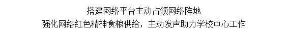 主动占领网络阵地,搭建网络思政教育平台。开通“大学生党建引领中心”微信公众号和官方QQ号,第一时间宣传党中央的路线方针政策和时政热点等,实现“同学们在网络,党建引领工作就深入网络,正能量传播就到网络”。